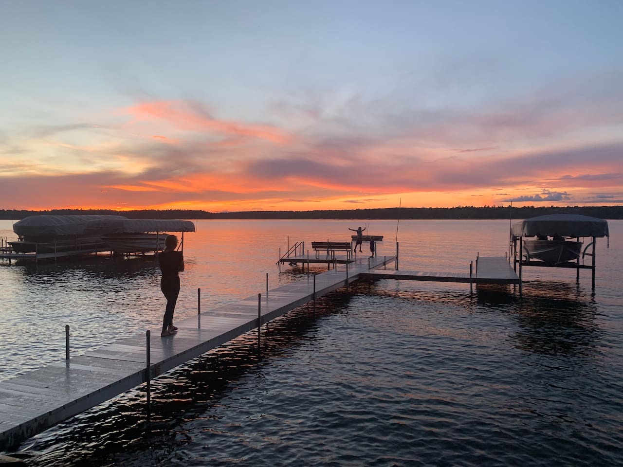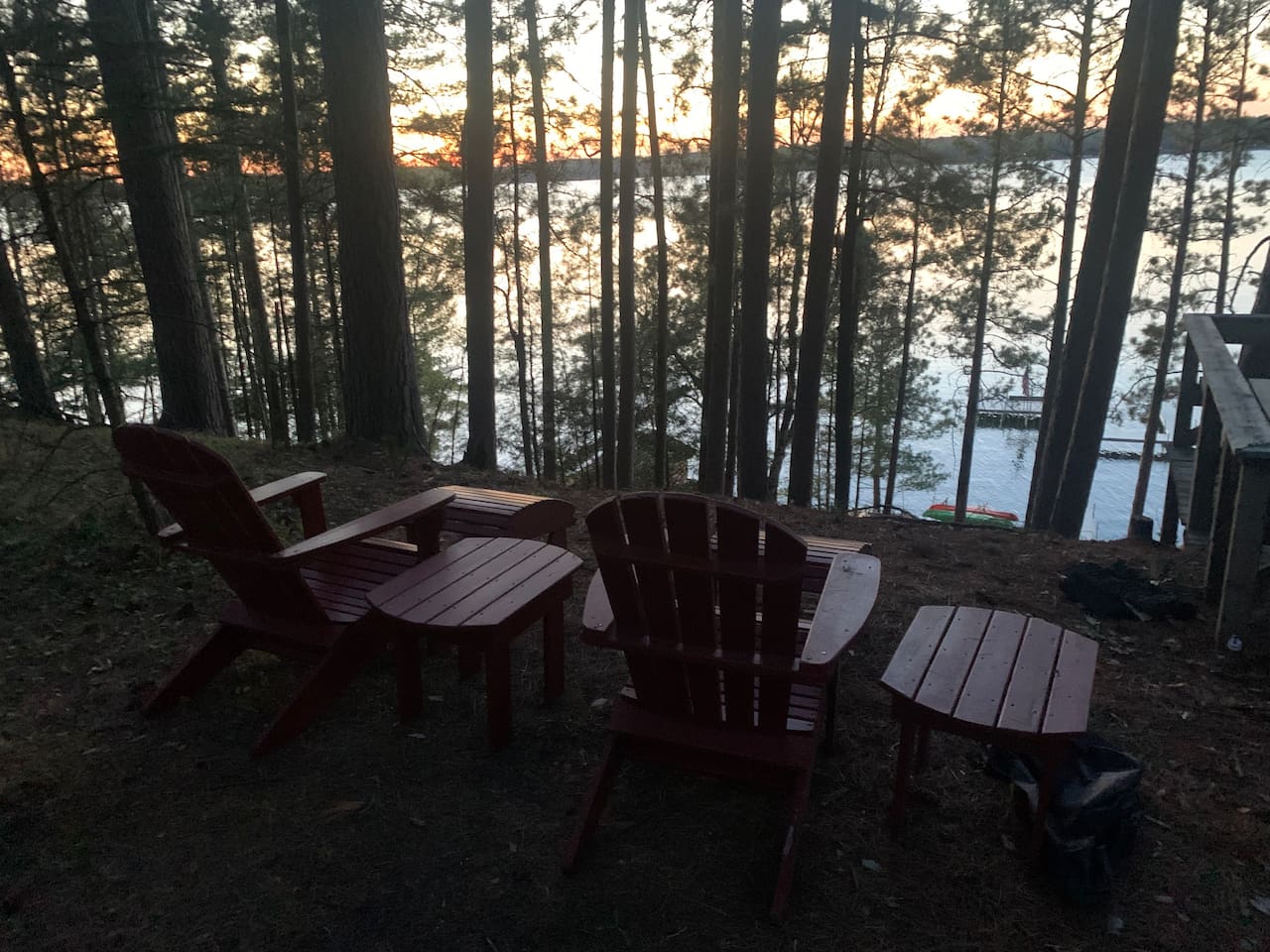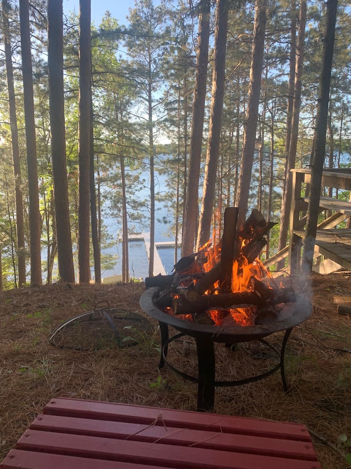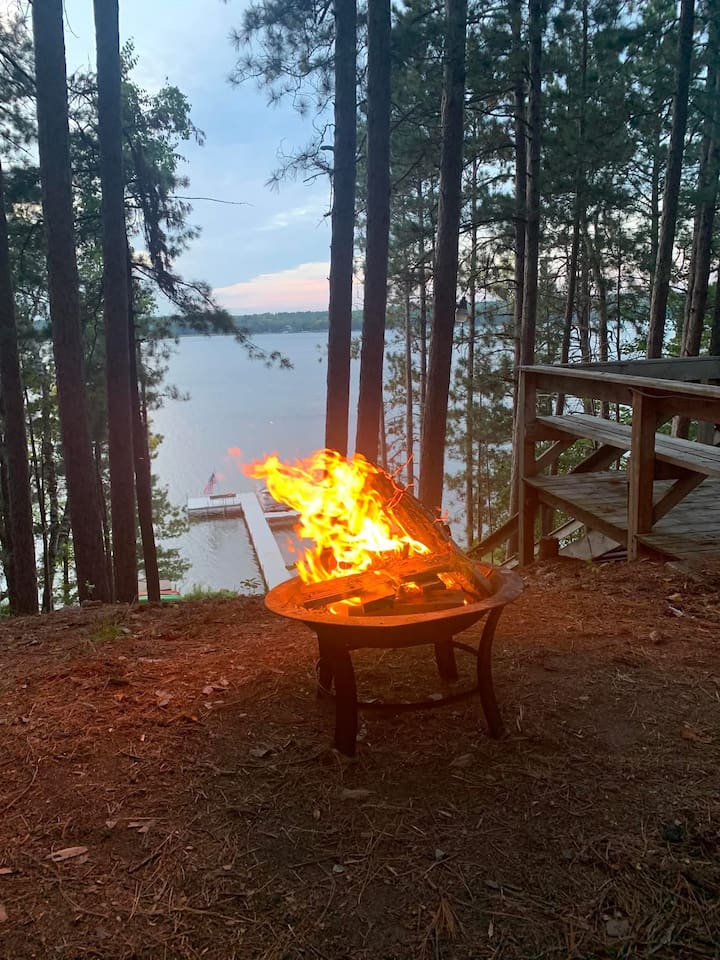 Down by the water, you’ll find everything you need to fully enjoy lake life. A large dock offers plenty of space for swimming and securing your watercraft. Guests have access to kayaks, a paddleboat, and a swimming platform, and paddle board. The shoreline is set up for relaxation, with a spacious fire pit, hammocks, and multiple seating areas—ideal for unwinding and taking in the beautiful surroundings.